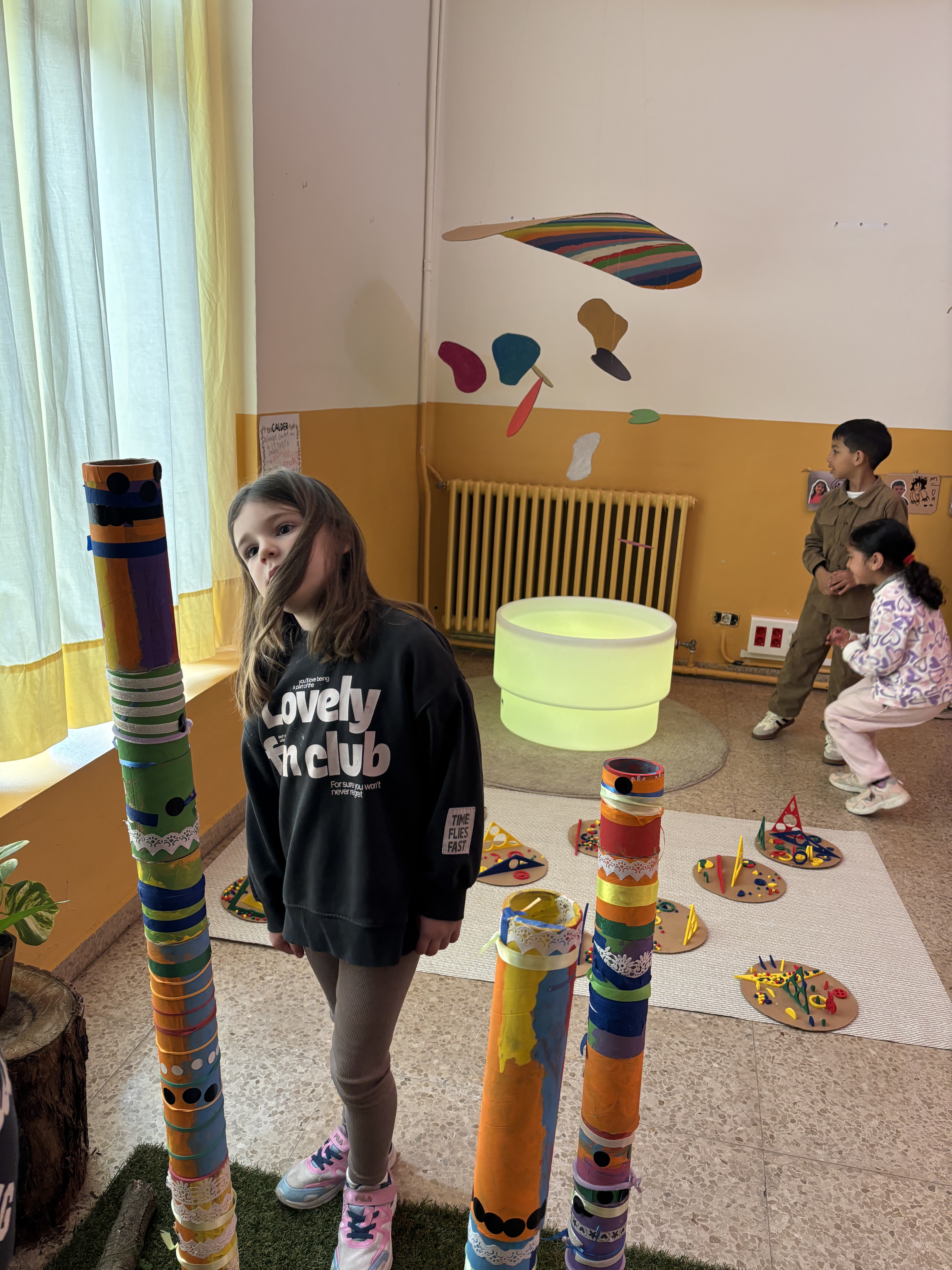 El alumnado de 5 años ha estado investigando las obras de varios autores y autoras , entre ellos , Mondrian , Calder y la escultora Russell.